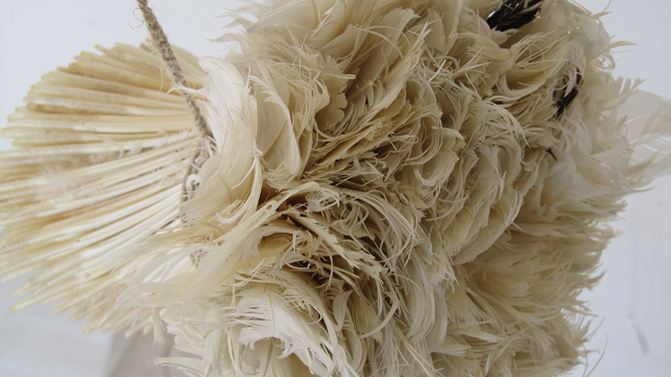 I am fascinated by natural materials as well as the ready-made objects I find. My northern location and the natural materials provided by the environment creep into my artwork. I use different fibres, quilt, bones, antlers, fur and wood. In addition, I work on old school atlases, blister packs, books, coat hangers, children's dungarees, used safety belts, kitchenware. The mundane world surrounding us is full of wonders.