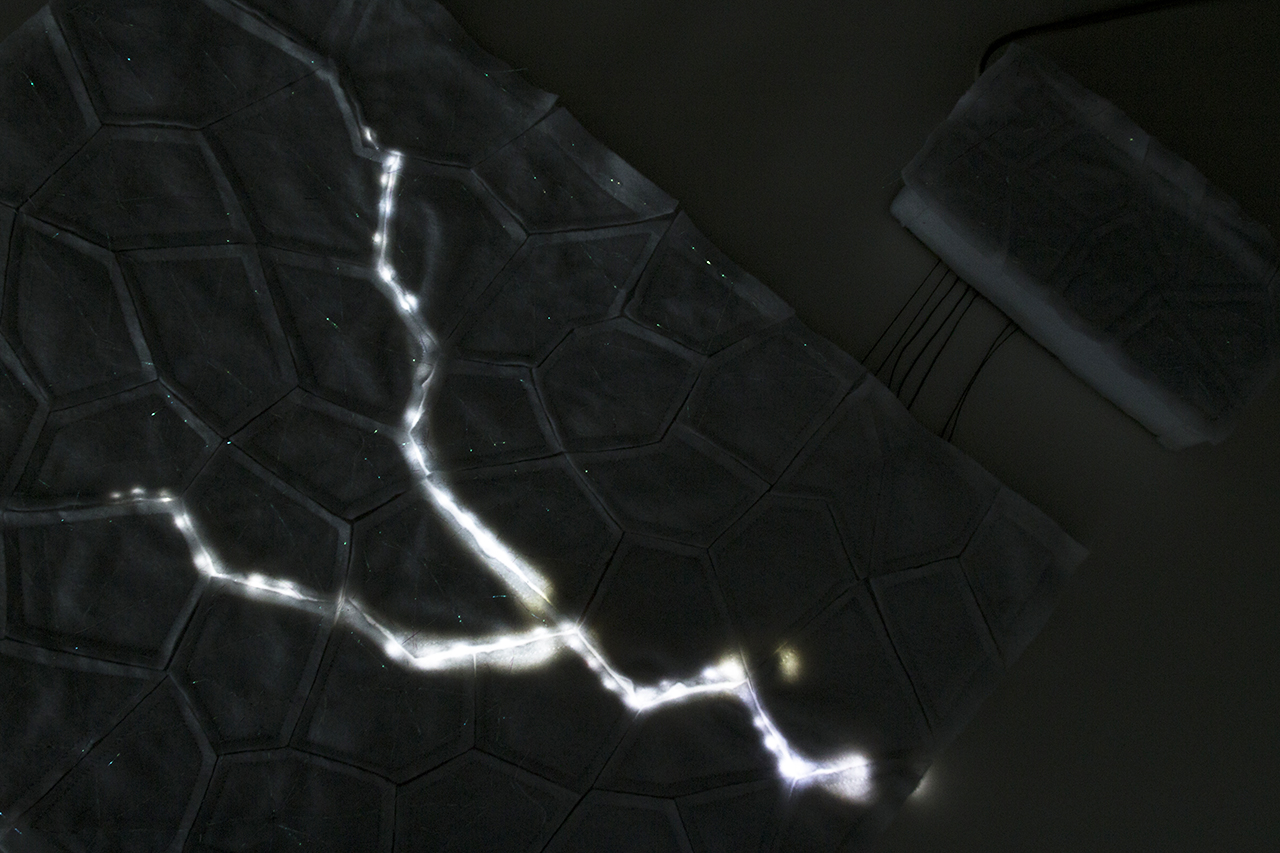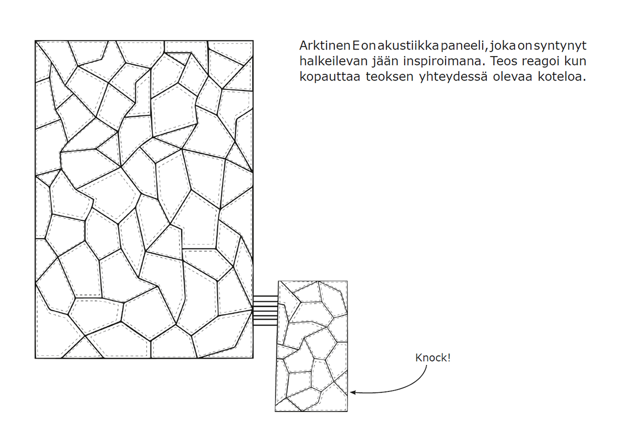 Arktinen E on interaktiivinen akustiikka paneeli, joka on syntynyt halkeilevan jään inspiroimana. Jaakkola on kehittänyt suunnitelmaansa eteenpäin Vaana 2017 messuosastolle.