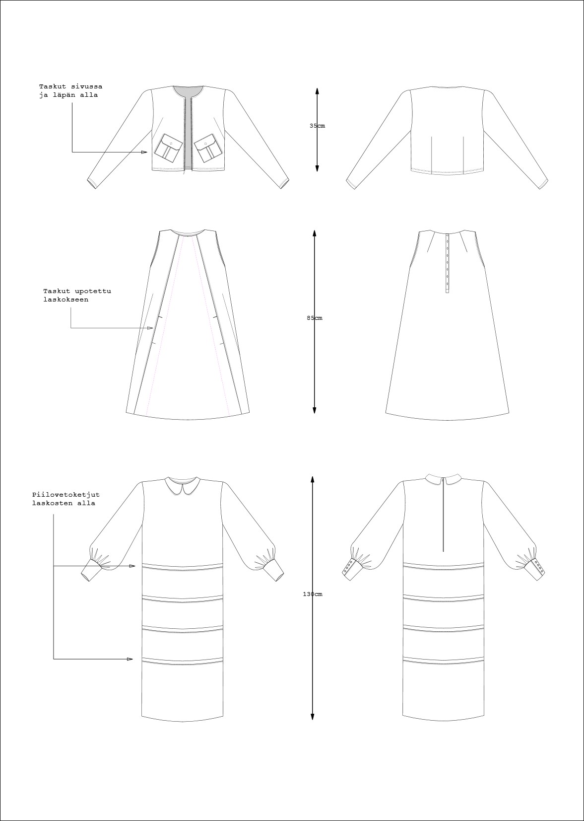 Digitaalisessa visualisoinnissa opettelimme Lectra Kaledo -suunnitteluohjelman käyttöä. Kurssin aikana tuotimme taso- tai rakennekuvat mallistosuunnittelu –kurssilla suunnittelemaamme mallistoon.