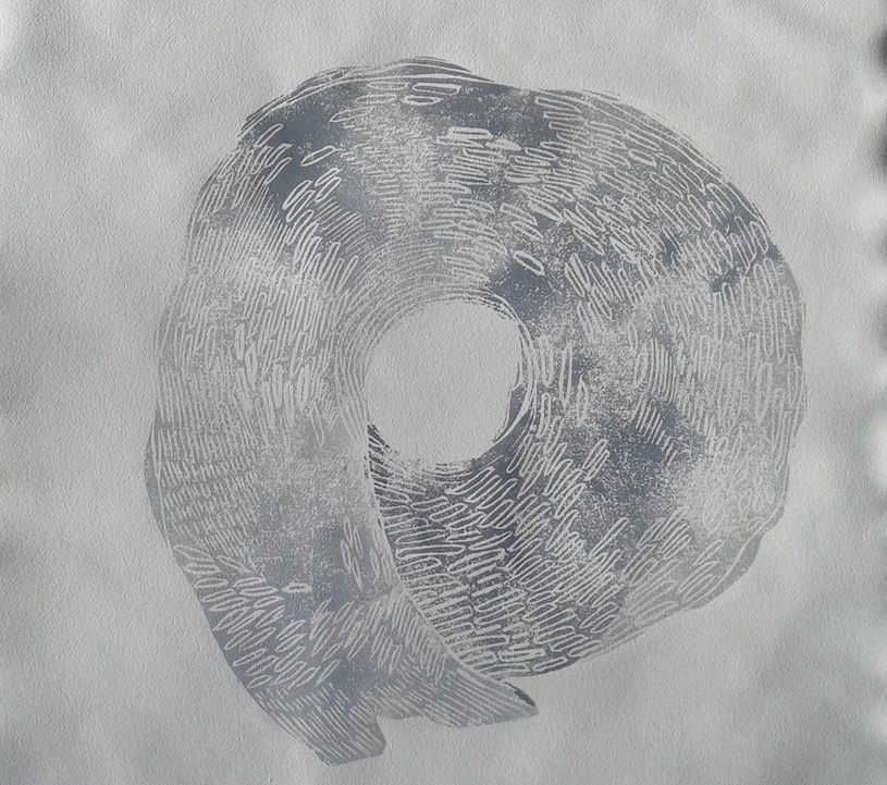 Työni on muodon ja muotokielen ja tekniikan harjoitelma. Kiinnostuin kokeilemaan ei-esittävän objektin kuvaamista grafiikan keinoin, sillä koin sen tässä ilmaisumuodossa vapauttavammaksi ja toisaalta haastavammaksi päämääräksi kuin esittävän kerronnan. Kokonaisuudessaan grafiikka on itselleni palkitsevaa etsimistä ja kokeilua.