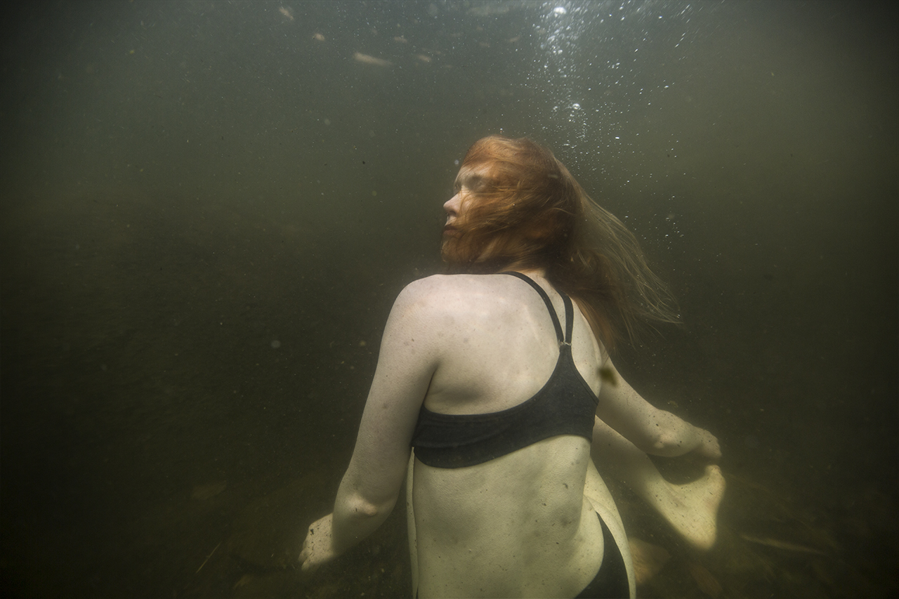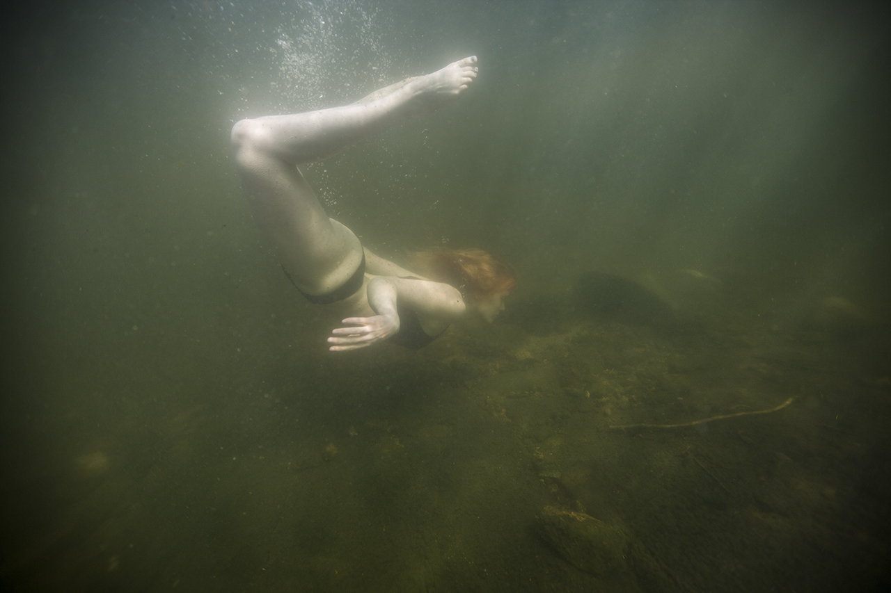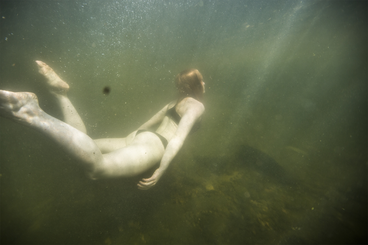 Anna Kekkonen on kuvannut vedenalaisia hetkiä Suomen järvimaisemassa. Hän kietoo kuvat pohdintaan siitä, mitä vastineita ihmisen kehollisuuden kokemus tuottaa vesielementin ympäröimänä.