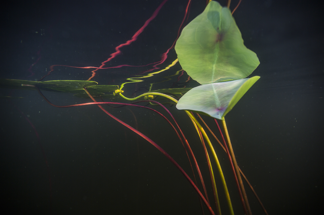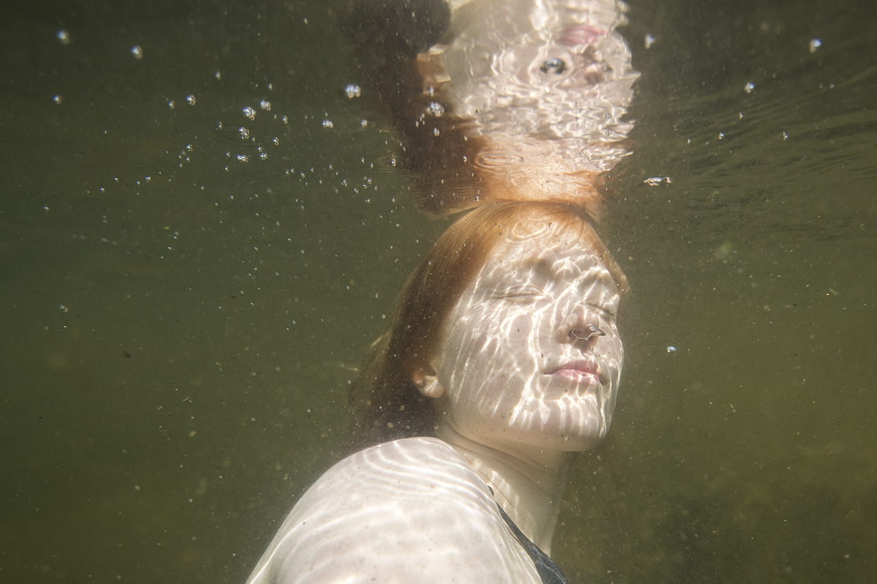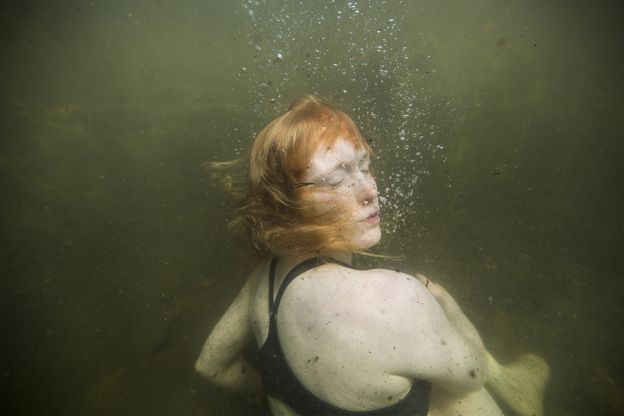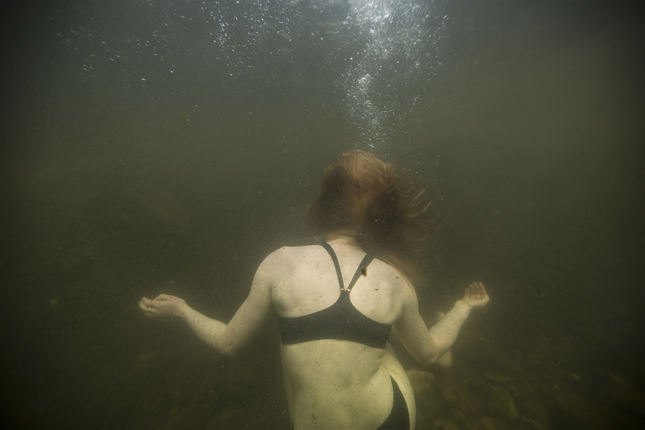 Anna Kekkonen on kuvannut vedenalaisia hetkiä Suomen järvimaisemassa. Hän kietoo kuvat pohdintaan siitä, mitä vastineita ihmisen kehollisuuden kokemus tuottaa vesielementin ympäröimänä.