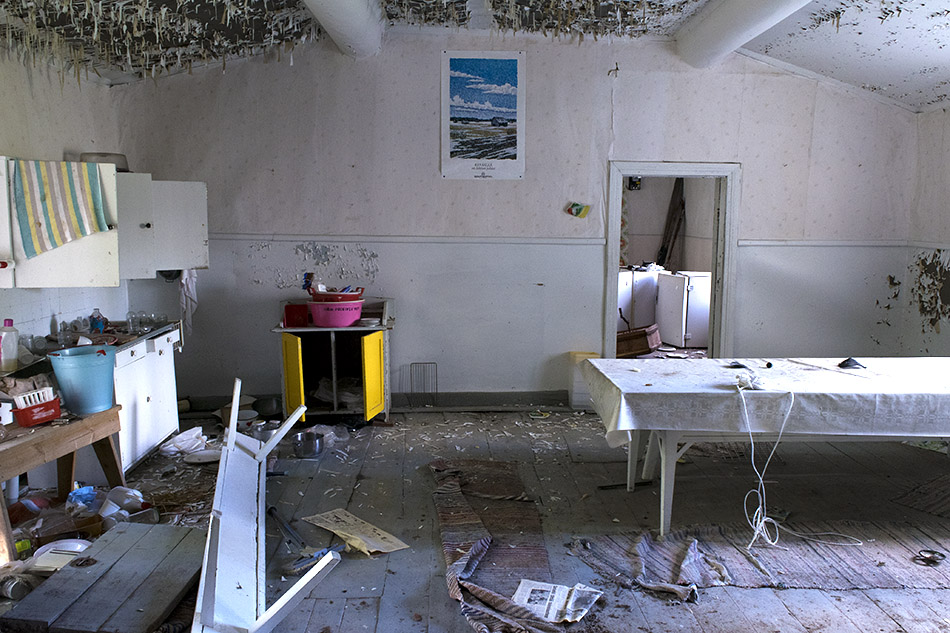 Elli Alasaari kuvaa teoksissaan asioita, jotka eivät usein ensi näkemältä ole kauniita. Häntä kiehtoo miten ihminen muokkaa ympäristöään, tuhoaa sen mikä on hänen tiellään ja jättää jälkiä lähtiessään. Ihminen kerää tavaroita, joiden avulla hän rakentaa ja jäsentää maailmaansa, mutta tavarat jäävät tarpeettomiksi ilman ihmistä. Ihmisen lähdettyä talot jäävät omituiseen välitilaan. Autiotaloista tulee hiljalleen osa luontoa ja kulkiessaan niissä on vähemmän ihminen ja enemmän lattialla läikkyvä valo tai verhoja heilutteleva tuuli, jotka nyt asuttavat taloa. Autiotaloissa tuntuu siltä, kuin astuisi uneen tai omaan alitajuntaan. Autiotaloissa kohtaa oman hetkellisyyden ja sen, mitä itse koittaa kasata kokoon elämässään. Näyttely koostuu digitaalisista värivedoksista, joissa on kuvattu Pohjanmaalla sijaitsevia autiotaloja sekä Rovaniemen Valistustalon purkua vuonna 2016.
