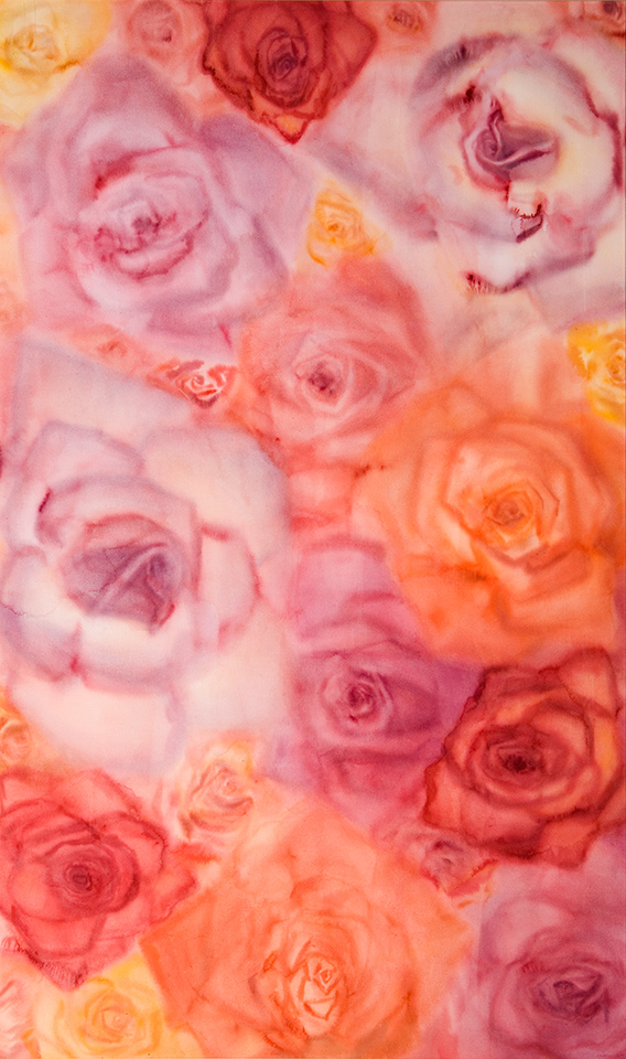 Senja Vellonen: Ruusut. 2000. Maalaus, akvarelli. 183 x 111 cm. Lapin yliopisto, Rovaniemi; YTK:n aula 1. krs.