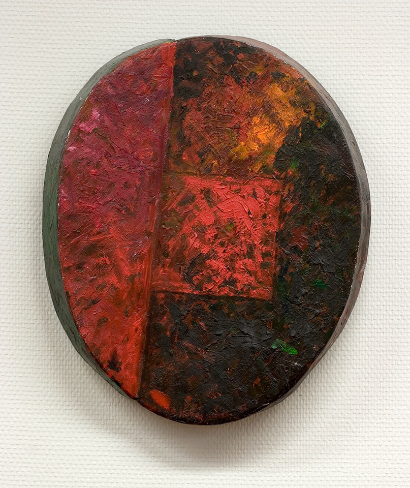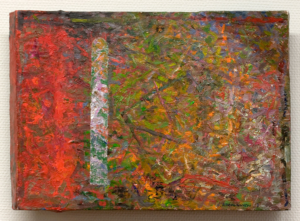 Olavi Korolainen: Röykky. 1987. Maalaus, öljy, puu. 35,5 x 49 cm. Lapin yliopisto, Rovaniemi; kirjasto 1. krs. peräseinä.