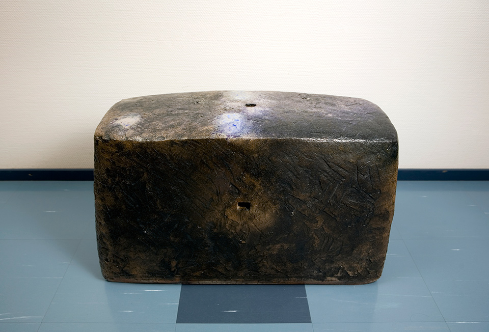Ritva Tulonen: Piilo. 1991. Veistos, taideteollisuus, keramiikka. 41 x 28,5 x 65 cm. Lapin yliopisto, Rovaniemi; E-siipi, 3. kerros.