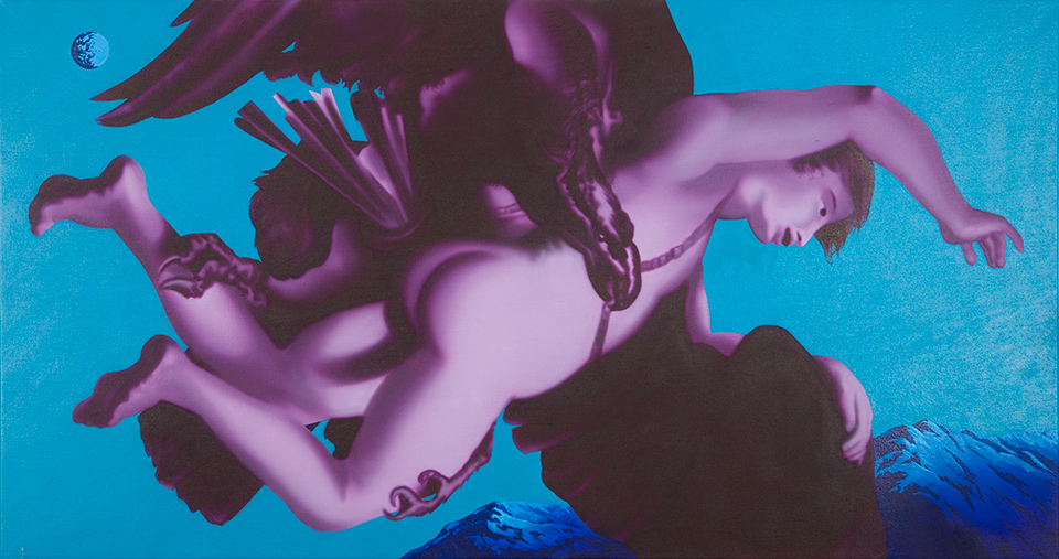Marja Helander: Kuva rakkaudesta. 1989. Maalaus, öljyväri. 200 x 160 cm. Lapin yliopisto, Rovaniemi; E-siipi, 3. krs, Hallinnon kokoushuone.