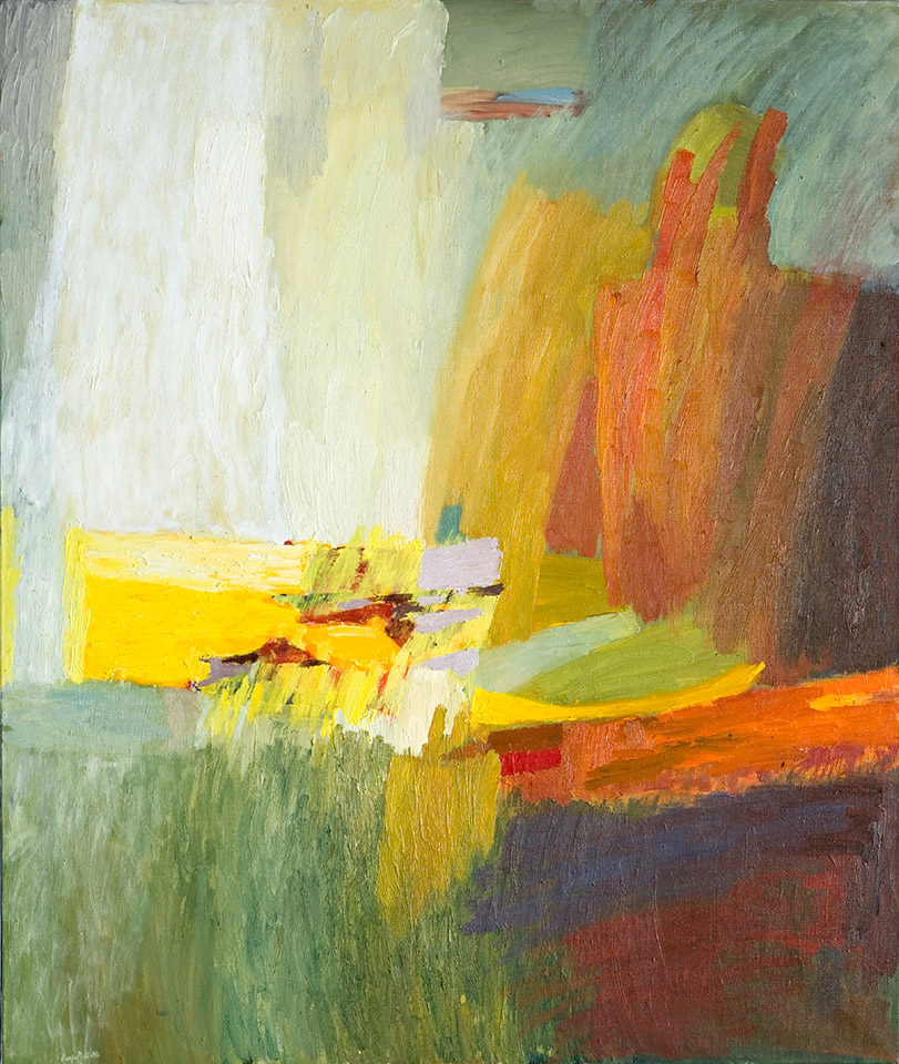 Marja Mali: Orastus. 1986. Maalaus, öljyväri. 110 x 130 cm. Lapin yliopisto, Rovaniemi; E-siipi, 3. krs, Vararehtorin huone.