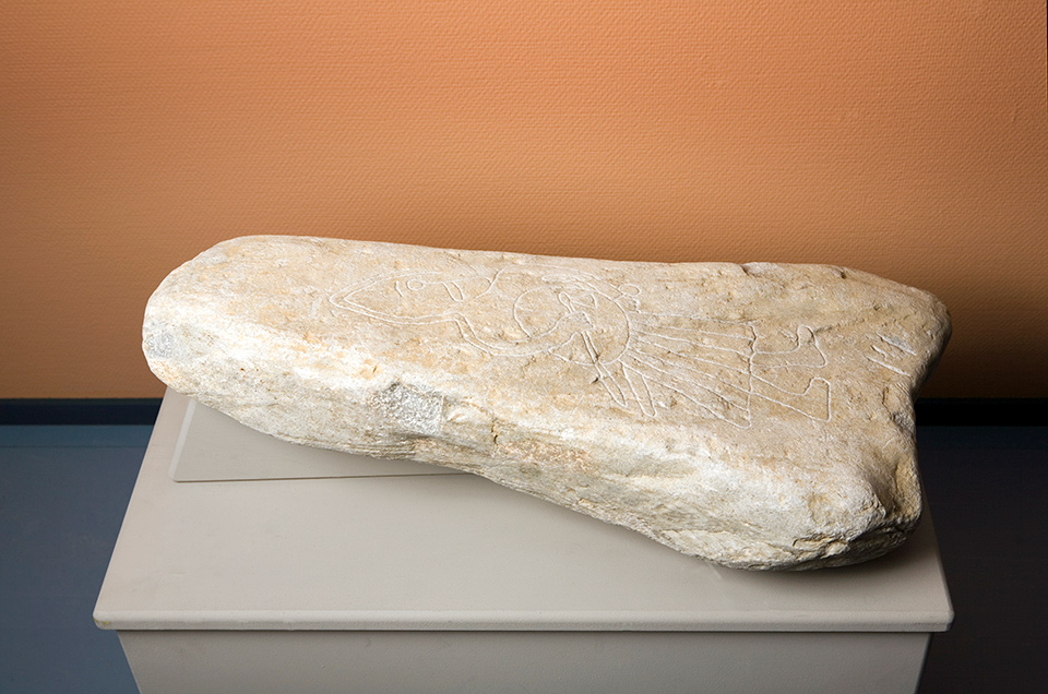 Kristina Riska: Muistikivi. 1990. Veistos, taideteollisuus, matalapolttoinen savi. Lapin yliopisto, Rovaniemi; kirjasto, etuaula.