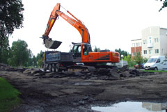 Taiteiden tiedekunnalle suunnitellun rakennuksen perustamista varten työmaa-alueelta poistetaan noin 20 000 kuutiometriä maita. Rehtori Esko Riepula toivoo yliopiston puolelta, että maankaivutyöt saataisiin tehtyä syyskuun alkuun mennessä.